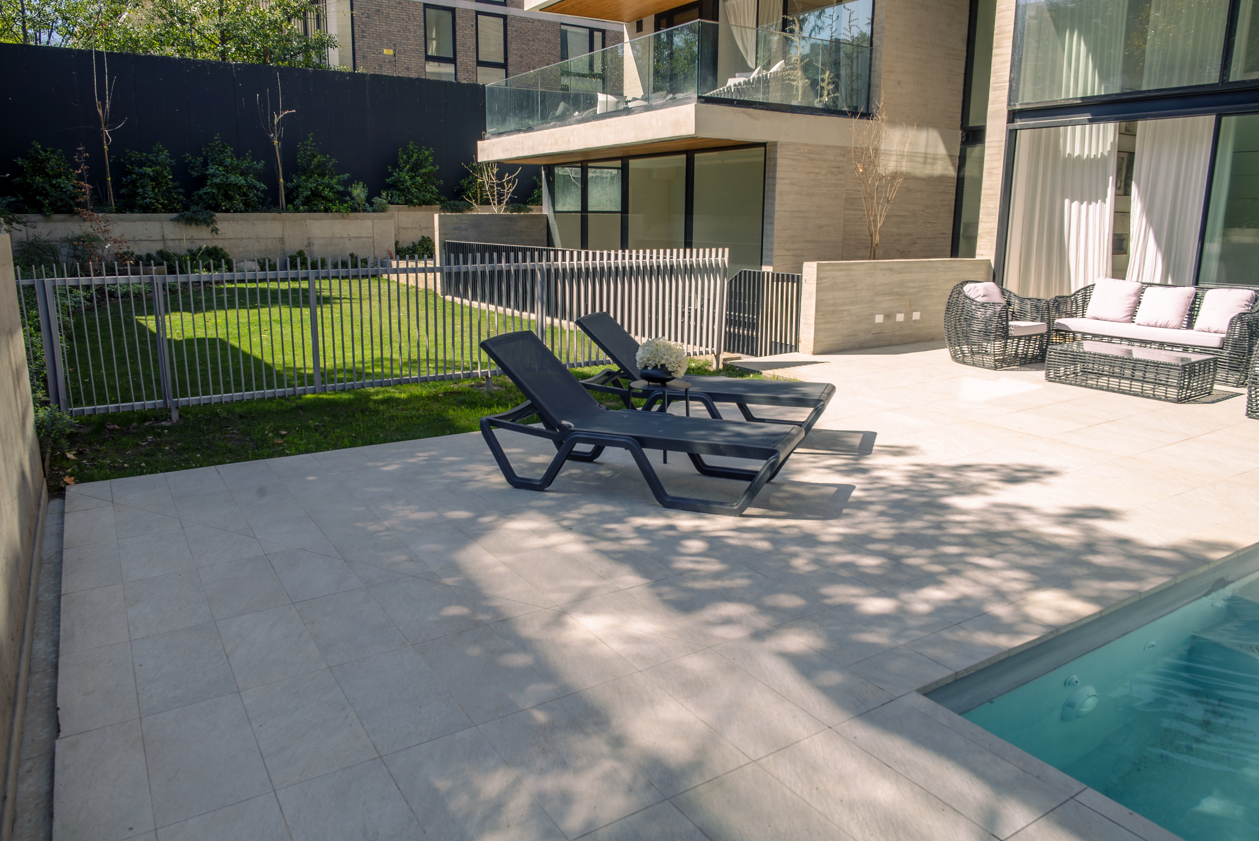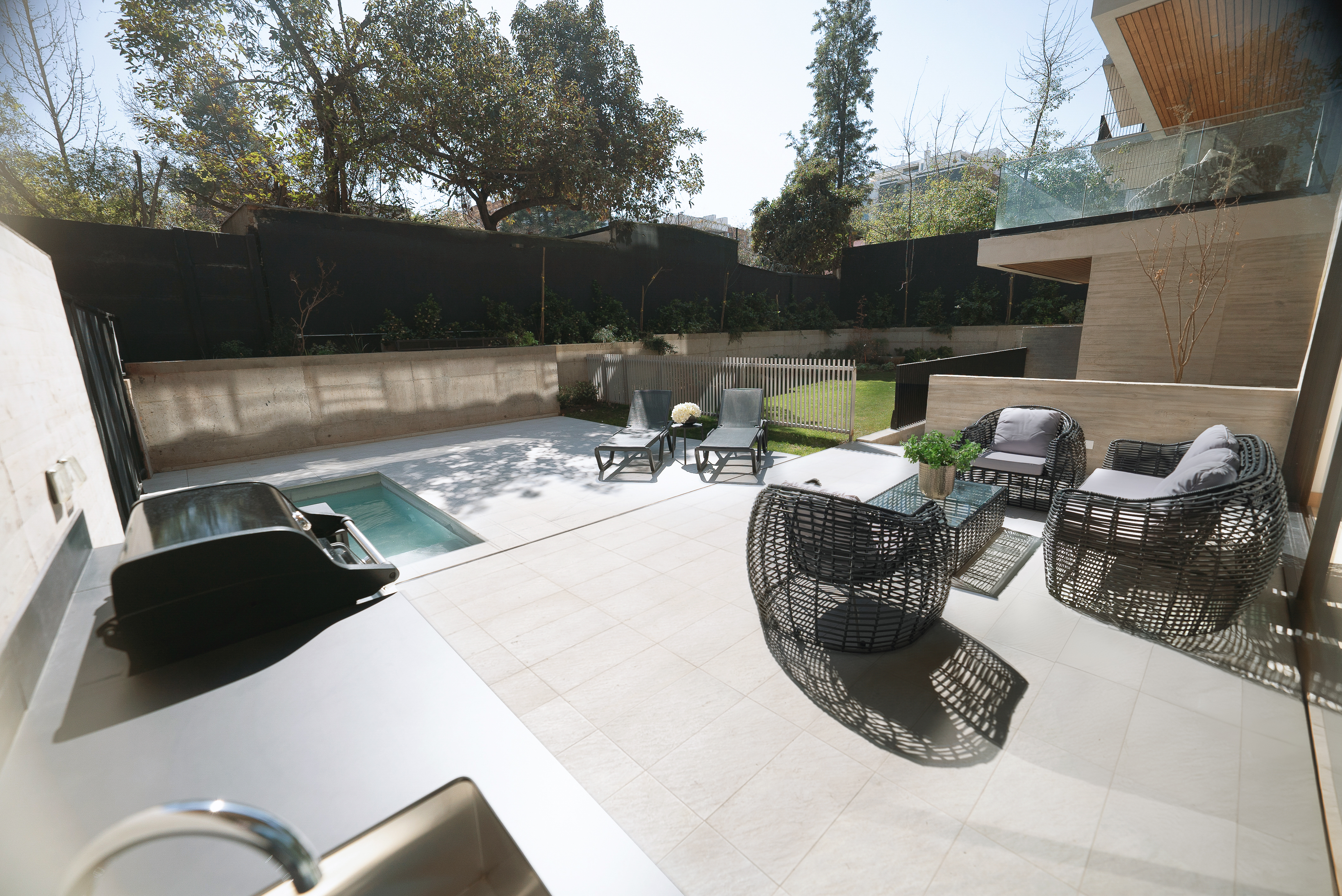 4150 Espoz, un proyecto ubicado en pleno Jardín del Este, uno de los barrios residenciales más exclusivos de Vitacura, combina de forma armoniosa diseño, arquitectura y cuidado del medioambiente, con terminaciones de lujo, espacios eficientes y equipamiento sustentable. Unidades con terraza de hasta 70M2, doble altura, jardines privados con paisajismo, piscinas individuales, palier, domótica. Sello Sustentable Inmobiliario: calificación B. 32 departamentos de 2 y 3 dormitorios + servicio con cocinas 100% equipadas con artefactos Miele, Alemania.